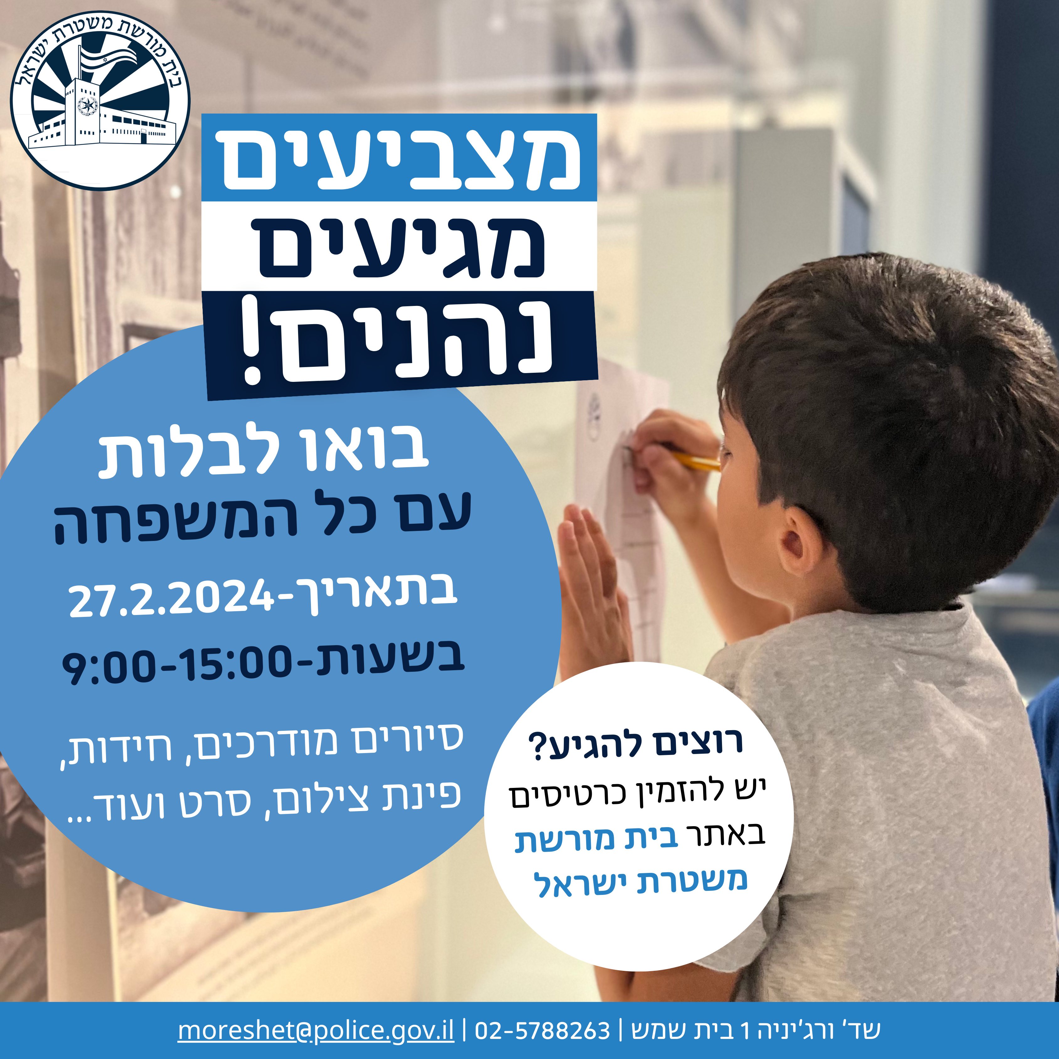 בואו לבקר ולסייר ברחבי המוזיאון, להכיר את ההיסטוריה והמורשת של משטרת ישראל ולפתור כתבי חידה מעניינים.